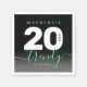 Celebrate the big two oh in style with this modern design, which features striking black, white, and mint green block and handwritten lettering set on a rich black to smoky grey background.