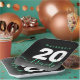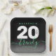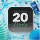 Celebrate the big two oh in style with this modern design, which features striking black, white, and mint green block and handwritten lettering set on a rich black to smoky grey background.