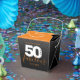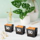 Celebrate the big five oh with this stylish modern design, which features striking black, white, and orange block and handwritten lettering set on a smoky grey to rich black background. Reverse shows identical design.