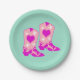 Modern Girly Pink Cowgirl Western Boots Mint Paper Plate