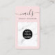 Modern girly pink white marble nails script business card
