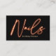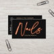 Modern glam orange neon nails technician manicurist script logo qr code business card, add your social media, logo and qr code,