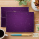A gleamy and snowy Christmas illustration featuring a shining christmas tree and snowflakes on a purple background.