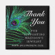 Modern Glitter Feather Bho Chic Thank You Small Business Promotional Magnet features peacock feathers in green, blue and purple on a black background with the text "Thank You" in elegant modern calligraphy white script. All text and background colours are customizable. Personalize by editing the text in the text box provided. Designed by Evco Studio https://www.zazzle.com/store/evcostudio