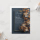 Introduce your special occasion with understated elegance using this Modern Gold and Floral Wedding Invitation. Featuring a rich, deep charcoal background, this design is beautifully framed with a sleek gold border. The right side is adorned with delicate golden blossoms and soft white floral accents, creating a striking contrast that feels both modern and timeless.