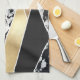 Modern Gold Black White Glitter Marble Geometric Kitchen Towel