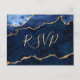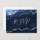 Modern Gold Blue Marble Agate Wedding RSVP Invitation Postcard