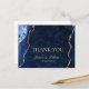 Modern Gold Blue Marble Agate Wedding Thank You Postcard