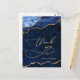 Modern Gold Blue Marble Agate Wedding Thank You Postcard