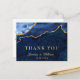 Modern Gold Blue Marble Agate Wedding Thank You Postcard