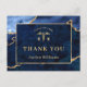Modern Gold Blue Marble Agate Graduation Thank You Postcard.