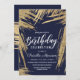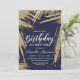 Modern Gold Brushstrokes Navy Blue Chic Birthday Invitation