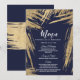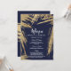 Modern Gold Brushstrokes Navy Blue Wedding Menu Invitation