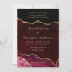 Modern Gold Burgundy Agate Photo Wedding Invitation