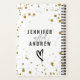 Customize this elegant design and get organised for your special day. Black and gold calligraphy on a white background with gold confetti and glitter dust. Change name and date and you have the perfect wedding bullet journal..