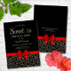 This feminine and classy birthday invitation features an Egypt geometric wedding gold outline and red bow ribbon on a black background. All the text can be customized according to your needs.