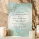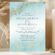 Modern Gold Flecks Teal Mist Watercolor Wedding Invitation