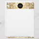 Coordinates with the Modern Gold Flowers Black Circle Business Card Template by 1201AM. A vintage floral pattern is made modern with a faux metallic gold and white colour scheme. The centred black circle highlights your name or business name on this modern personalized letterhead. © 1201AM CREATIVE