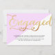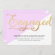 Tell the world that you're engaged with these super trendy announcements featuring a modern pink and white background with chic gold foil script typography.