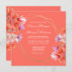 Here's a beautiful, modern way to invite guests to your wedding. This design features a delightful floral arrangement in shades of coral, pale pink, and soft fuchsia on a square shaped card. Your customizable wedding details are encircled by a trendy faux gold foil geometric frame. All this on a lovely coral background. The back of the card features the same floral arrangement on coral. The background colours are changeable as desired. Please see the entire wedding suite for other products carrying this design. If you have a design question or would like to see this design on another product, please feel free to contact me at jschmidtdesignworks@gmail.com. Design © Judith Schmidt.