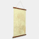 Artistic wall tapestry celebrating nature features gold fan shaped gingko leaves on a pastel yellow background
