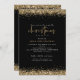 Modern Gold Glitter Christmas Party Black Invite. A glam faux glitter border is on each side top and bottom, and Christmas is in a set lowercase handwriting style script. Easily personalise the text to your own details. You can also change the text and background colours via the customise further option if you wish.