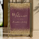 The top and bottom borders of this elegant sign are decorated with gold faux glitter. Customize the text in gold-colored handwriting script and serif fonts on a dark burgundy background.