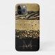 Girly modern animal print - both zebra and leopard - in brush strokes with gold, glitter, black and adorned with your script monogram, first name and initial.