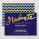 Modern Gold Graduate Typography Navy Blue Chevron Invitation