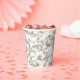 This paper cup features a modern faux marble texture in gold, grey, and white.