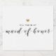 Custom-designed maid of honour proposal wine bottle labels featuring modern calligraphy with gold heart design. Also perfect for small gift boxes and candle jars.