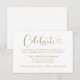 Modern antique gold and white (colours can be modified) wedding reception enclosure card features a stylish typography design with chic calligraphy script and a heart accent. The simple and elegant custom text that can be personalized to invite guests to "Celebrate" the wedding, including the reception location name, address, and arrival time.
