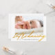 Modern yellow gold Foil Introducing Hand Written Photo Baby Birth Announcement