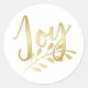 Modern Gold Joy w/ Laurel Leaf White Holiday Classic Round Sticker