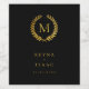 Modern and elegant golden laurel wreath monogram, personalized wine labels. Font style and colour can be customized.