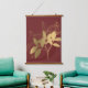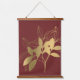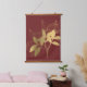 Modern floral digital art wall tapestry features gold leaves in solid silhouette and outline on dark red background.
