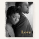 This elegant and modern notebook says "Love" in bold, faux gold text, with your personal photo covering the front. The back cover is black.