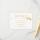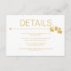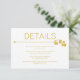 This Details enclosure card is an elegant choice for any wedding, featuring a gold line with a branch and leaves on one side and a single dot on the other, set against a white background. The reverse side features a customizable diagonal pattern with the couple's names in gold, adding a graceful touch. If the names take up more or less space, simply adjust the font size accordingly.
