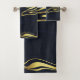 Modern Gold Marble Dark Blue Elegant Stripes Bath Towel Set