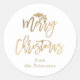 Modern gold merry christmas script mistletoe white classic round sticker