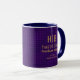 Customize and personalize this modern mug designed with a modern purple mini squares pattern and a simple and minimalist 2 Letter Gold Monogram. Gift this elegant mug to your employees, clients, and vendors. Professional and eye-catching promotional product for your company.