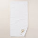 A modern minimalist gold monogram logo or letter mark in a circle with your name underneath, featured on a white towel set, for a chic modern vibe. Add your own first name letter and your name.