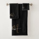 A elegant sweeping swash script gold monogram name towel set for your bathroom decor. Gold monogram white script, on black.