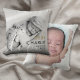 Modern gold photo baby birth announcement pillow to introduce your beautiful newborn baby. The front features a photo of your baby along with chic gold and black text for your baby's name and birth stats with a second photo on the reverse. A lovely keepsake to celebrate your new arrival! Designed by Thisisnotme©