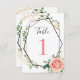 Modern Gold Pink Geometric Table Numbers. These greenery foliage invites will do the trick! this customizable invite features a modern geometric frame with faux gold glitter and black. The borders are adorned with green foliage such as eucalyptus, berries and pink and cream roses flowers. The sides are adorned with faux gold glitter. This makes a great modern foliage invite.