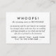 A modern monogram gets glam with intertwined gold wedding rings making this a new classic wedding invitation suite with streamlined text in clean black and white. Personalize all of the text of this WHOOPS error correcting insert card and help direct your guest to any changes you have made since the invitations were printed and save money on a reprint by adding this to your mailed envelope.