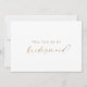 This modern gold script bridesmaid proposal card is perfect for a minimalist wedding. The simple yellow gold colour design features unique industrial lettering typography with modern boho style. Customizable in any colour. Keep the design minimal and elegant, as is, or personalize it by adding your own graphics and artwork. Customize the card with the name of the bride and the bridesmaid. Personalize the back of the card with a personalized message.