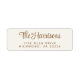 Modern light cream return address label with your name in a stylish gold script and your address in simple gold lettering.