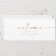 This modern gold script hanging seating chart welcome header is perfect for a minimalist wedding. The simple yellow gold colour design features unique industrial lettering typography with modern boho style. Customizable in any colour. Keep the design minimal and elegant, as is, or personalize it by adding your own graphics and artwork. The card prints on the front and back (double-sided). Please check the collection for the coordinating table number seating chart cards.