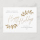 A modern script happy holidays gold foil branches business holiday postcard with simple typography. Click the edit button to customize this design.